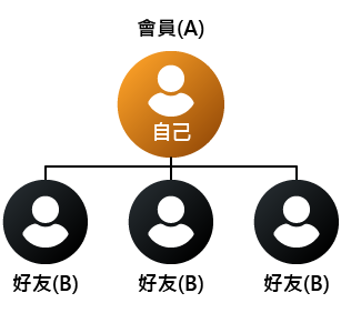 若是你的好友也加入這個計畫,好友將可以得到他第一層所有好友 "千分之一" 遊戲回饋金。